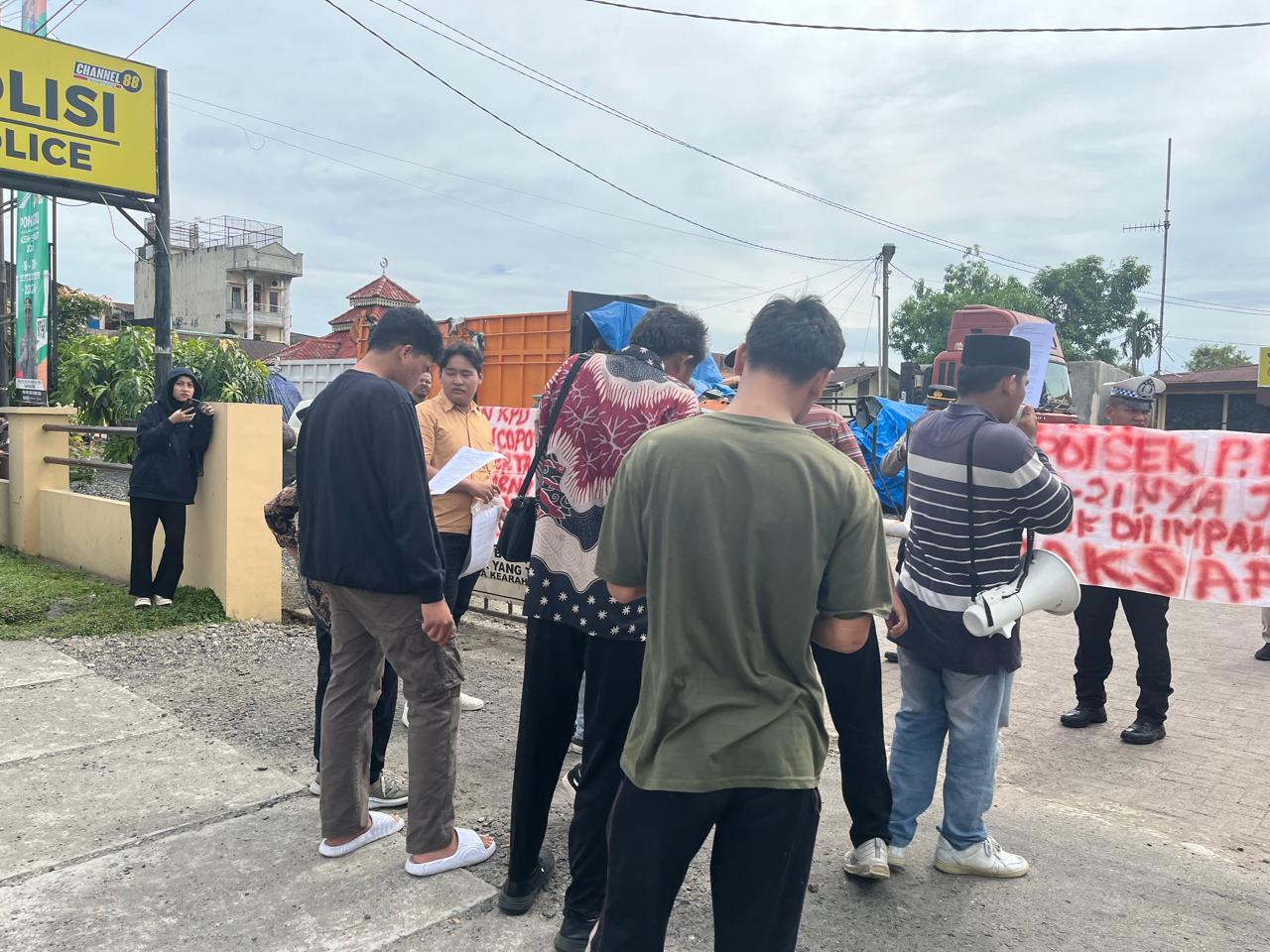 MEDAN – Mahasiswa yang tergabung di Koalisi Pemerhati Indonesia Raya melakukan aksi unjukrasa di Markas Polsek Pancur Batu, Deli Serdang, Jumat (20/9).