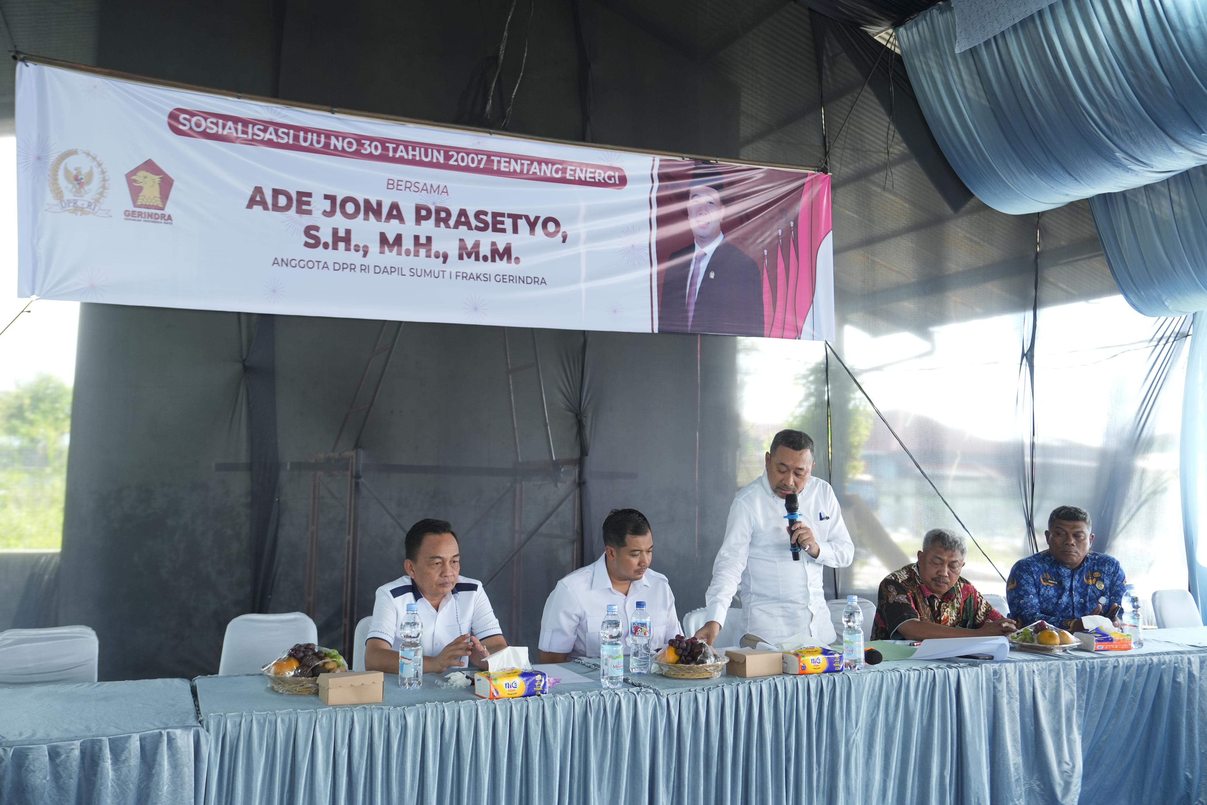 MEDAN – Anggota DPR RI Dapil Sumut 1, Ade Jona Prasetyo melakukan sosialisasi Undang Undang (UU) No 30 Tahun 2007 Tentang Energi di hadapan konstituennya, Jum,at (20/12) di Mabar, Medan Deli.