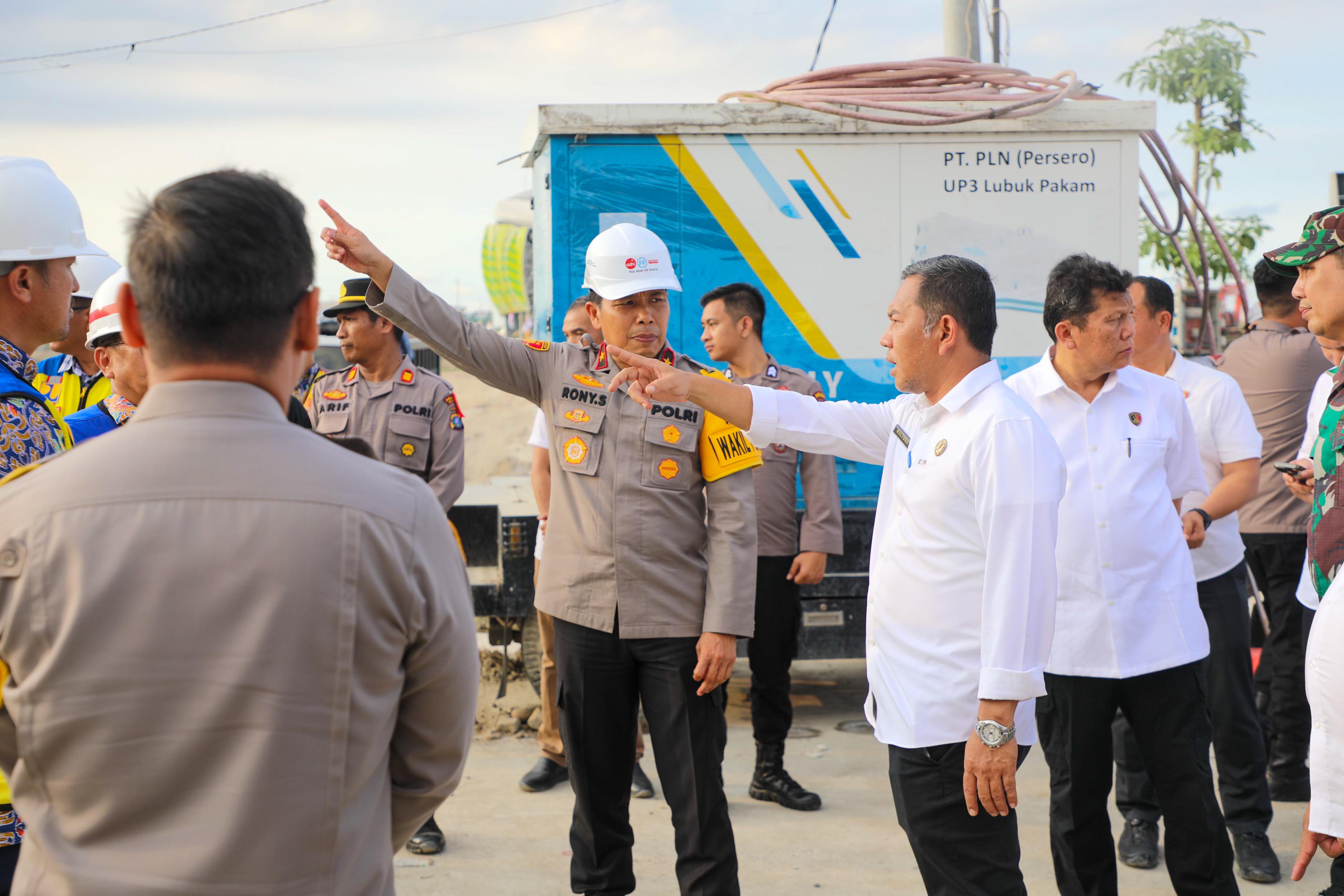 DELI SERDANG – Wakapolda Sumut Brigjen Rony Samtana bersama instansi terkait melakukan cek akhir untuk pembangunan Stadion Utama yang terletak di Sports Center, Desa Sena, Deli Serdang, Rabu (4/9).