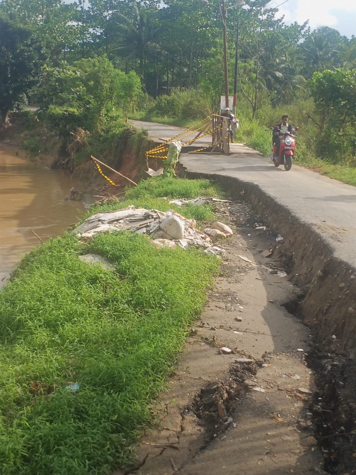 PATUMBAK – Diterjang banjir besar, jalan penghubung antar kecamatan di Kabupaten Deliserdang terputus. Jalan yang amblas membuat aktivitas masyarakat disana terhadambat. Sebab, separuh jalan yang berdampingan dengan sungai suruai itu terkikis dan amblas.