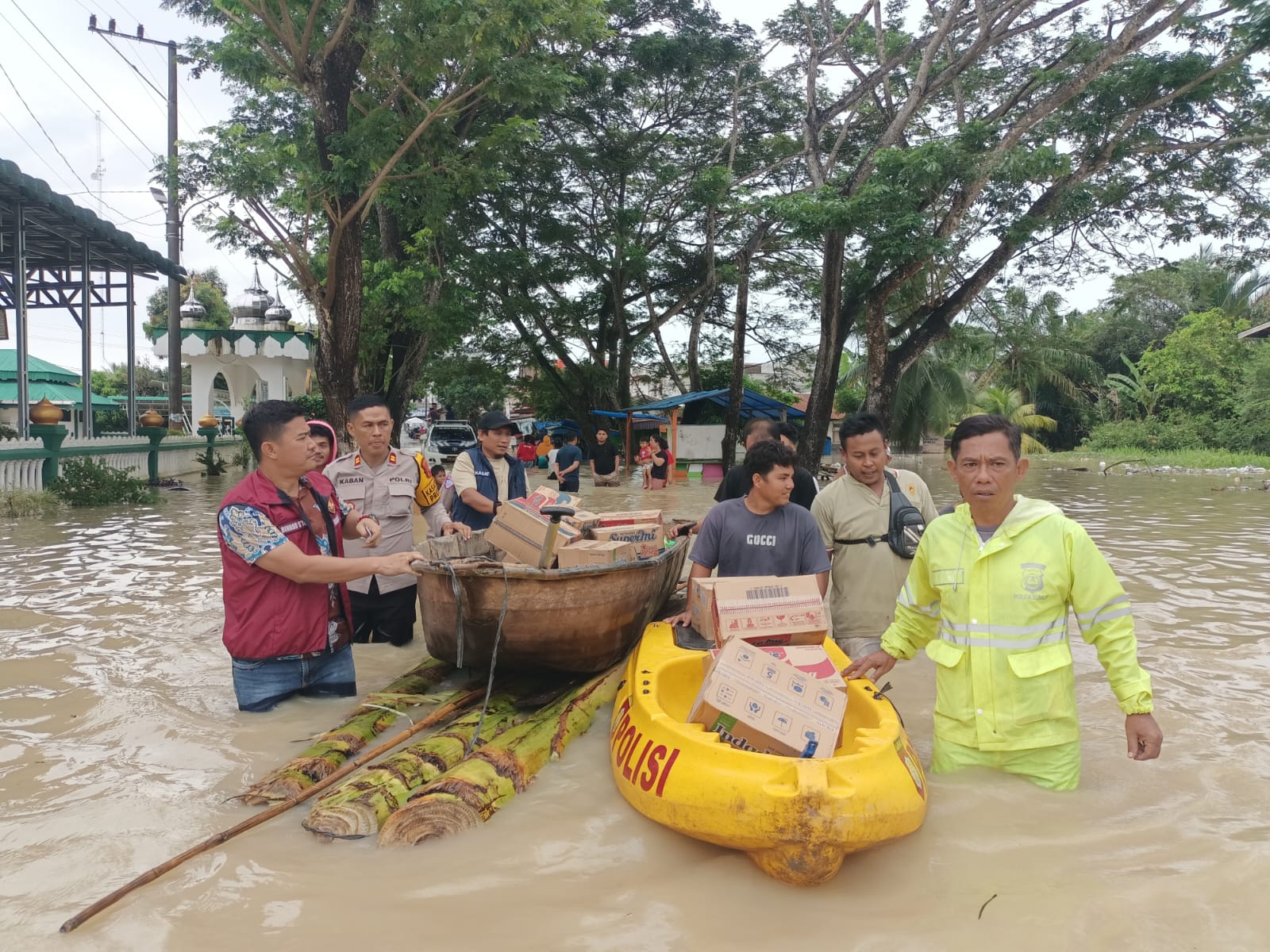 Kapolres Serdang Bedagai AKBP Jhon Sitepu SH MH melalui Kasat Narkoba AKP Arif, memimpin penyaluran bantuan bersama Kasat Reskrim IPTU Binrod Situngkir SH MH, Kasat Binmas IPTU Inja V. Kaban SH, KBO Lantas IPDA Juarno, SH, serta Bhabinkamtibmas Polsek Firdaus Aiptu Endra S. Bantuan berupa paket sembako diserahkan langsung kepada warga yang terdampak banjir.