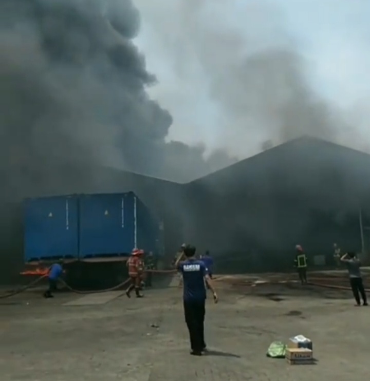 Api dengan cepat membesar dan melahap bangunan gudang dan menyebabkan ribuan paket yang tersimpan di dalamnya ikut terbakar.