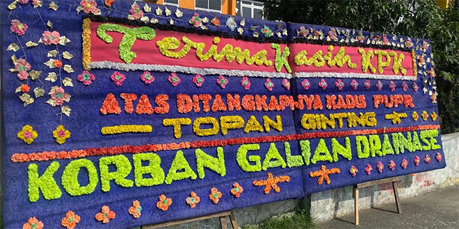 Misteriusnya, pengirim dari papan bunga tersebut tidak menyebutkan nama aslinya. Namun, menyebutkan dari “Warga Terzalimi dan korban Galian Drainase”.