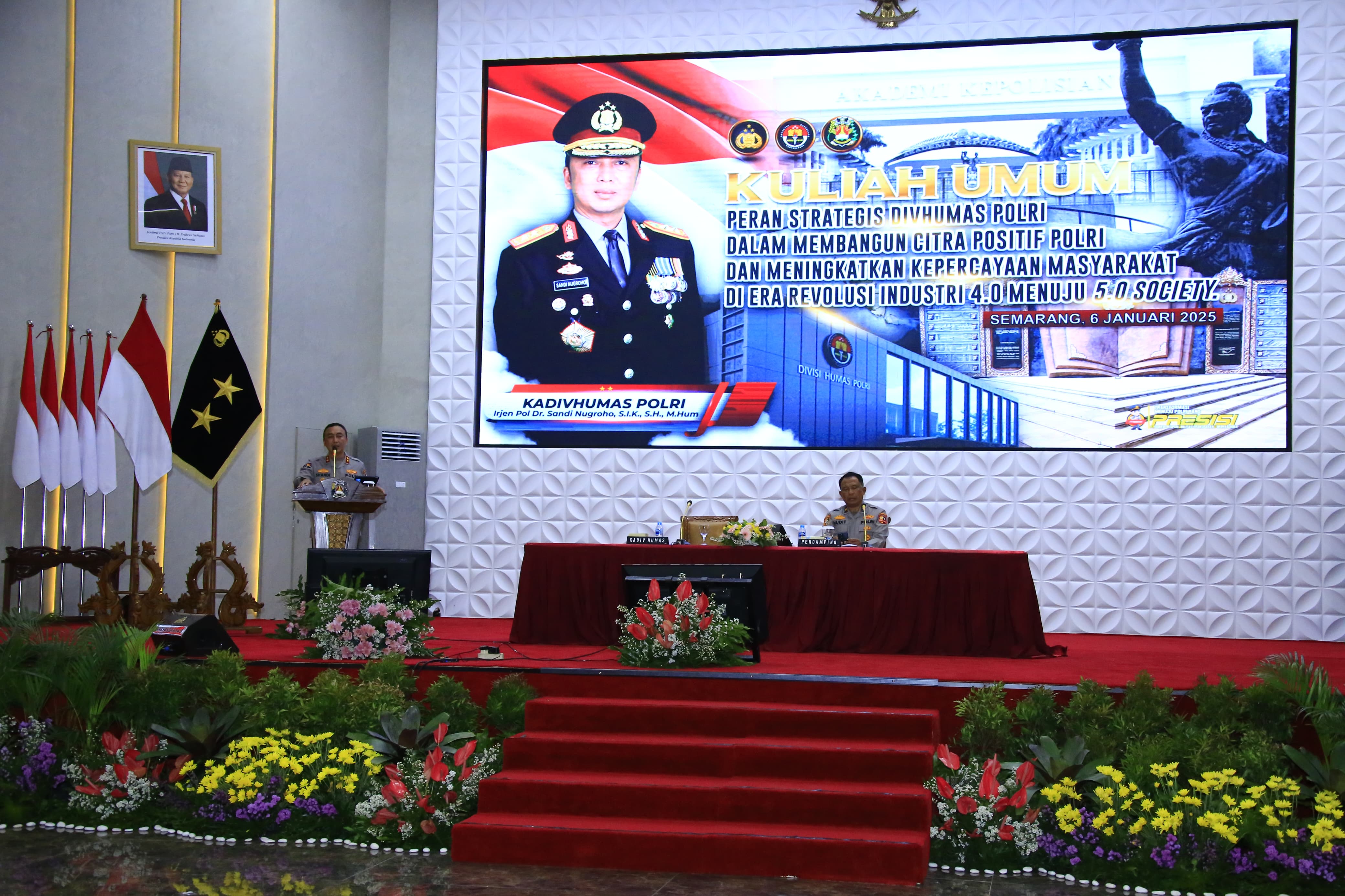 SEMARANG – Kadiv Humas Polri, Irjen. Pol. Sandi Nugroho, memberikan pembekalan penting kepada taruna Akademi Kepolisian (Akpol) semester genap Tahun 2025 dalam sebuah kuliah umum di Akpol Semarang, Jawa Tengah, pada Senin (6/1/2025).