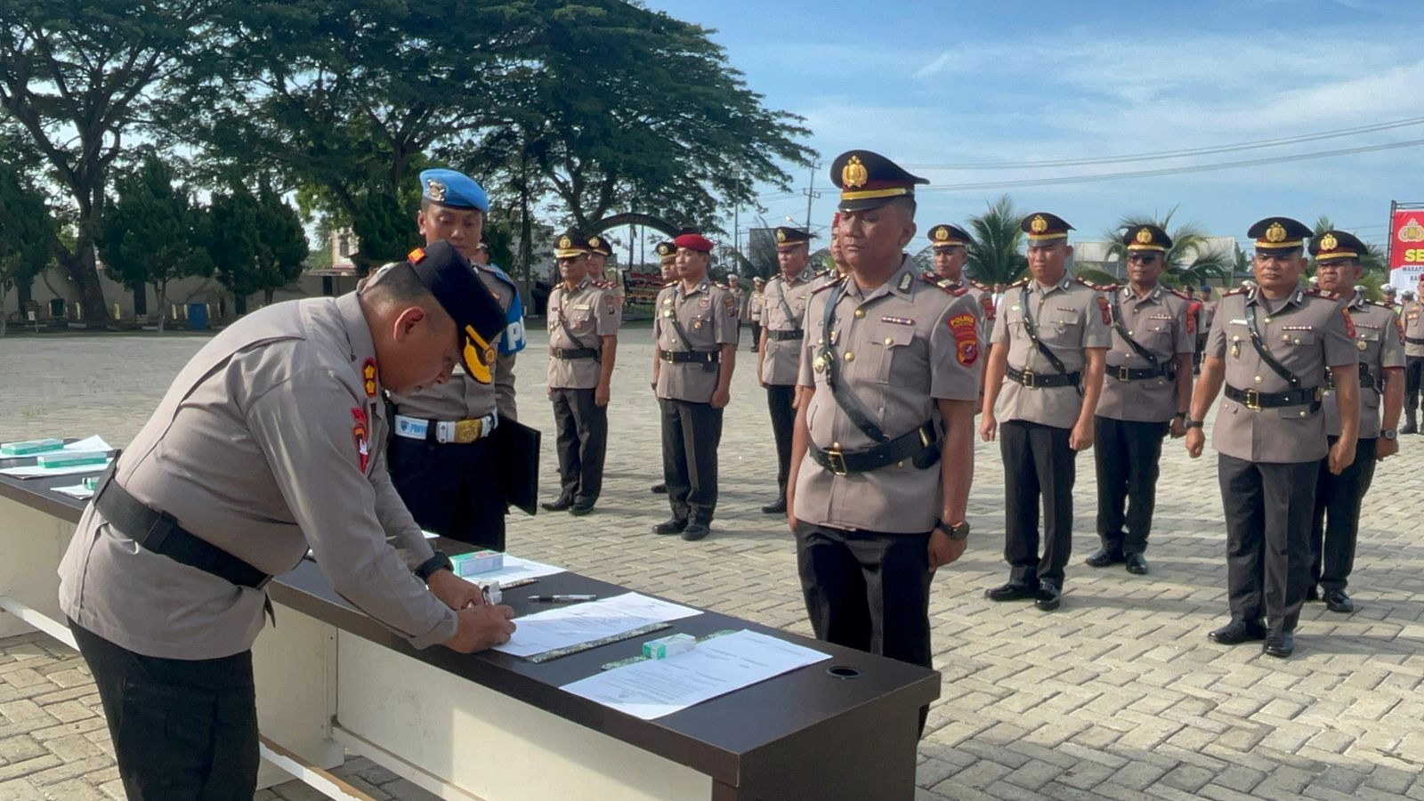 SERGAI – Kepolisian Resort Serdang Bedagai (Sergai) menggelar upacara serah terima jabatan (sertijab) Wakapolres, Kapolsek, Kasat Lantas, Kasat Narkoba, Kasat Binmas, Kasat Samapta, Kasi Humas di Halaman Mako Polres Sergai, Kamis (16/4/2026).