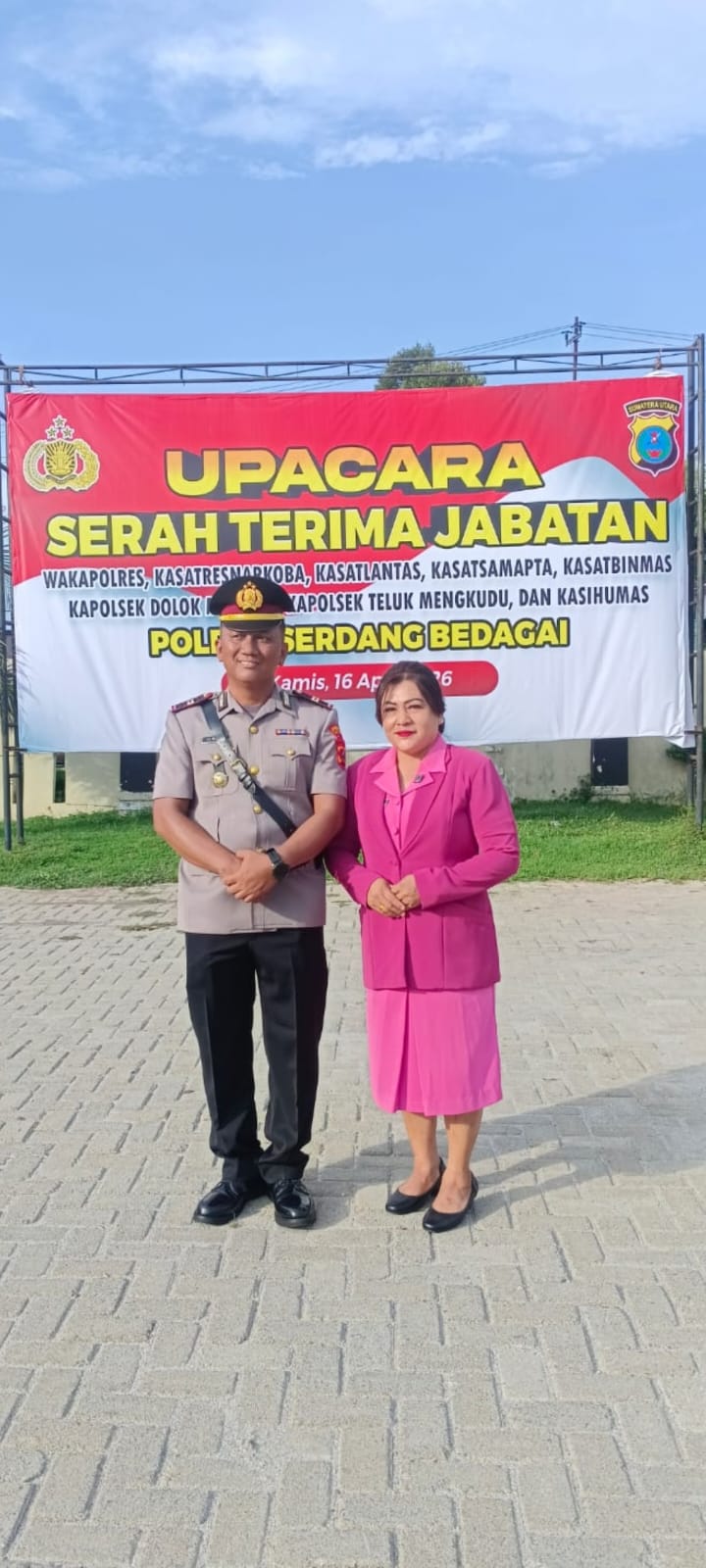 Bertindak sebagai Inspektur Upacara, Kapolres Sergai, AKBP Jhon Hery Rakutta Sitepu SIK MH memimpin langsung jalannya kegiatan. Pejabat resmi berganti Kapolsek Teluk Mengkudu, AKP Desman Manalu SH dipercayakan menjabat Kasat Reskrim Polres Toba.
