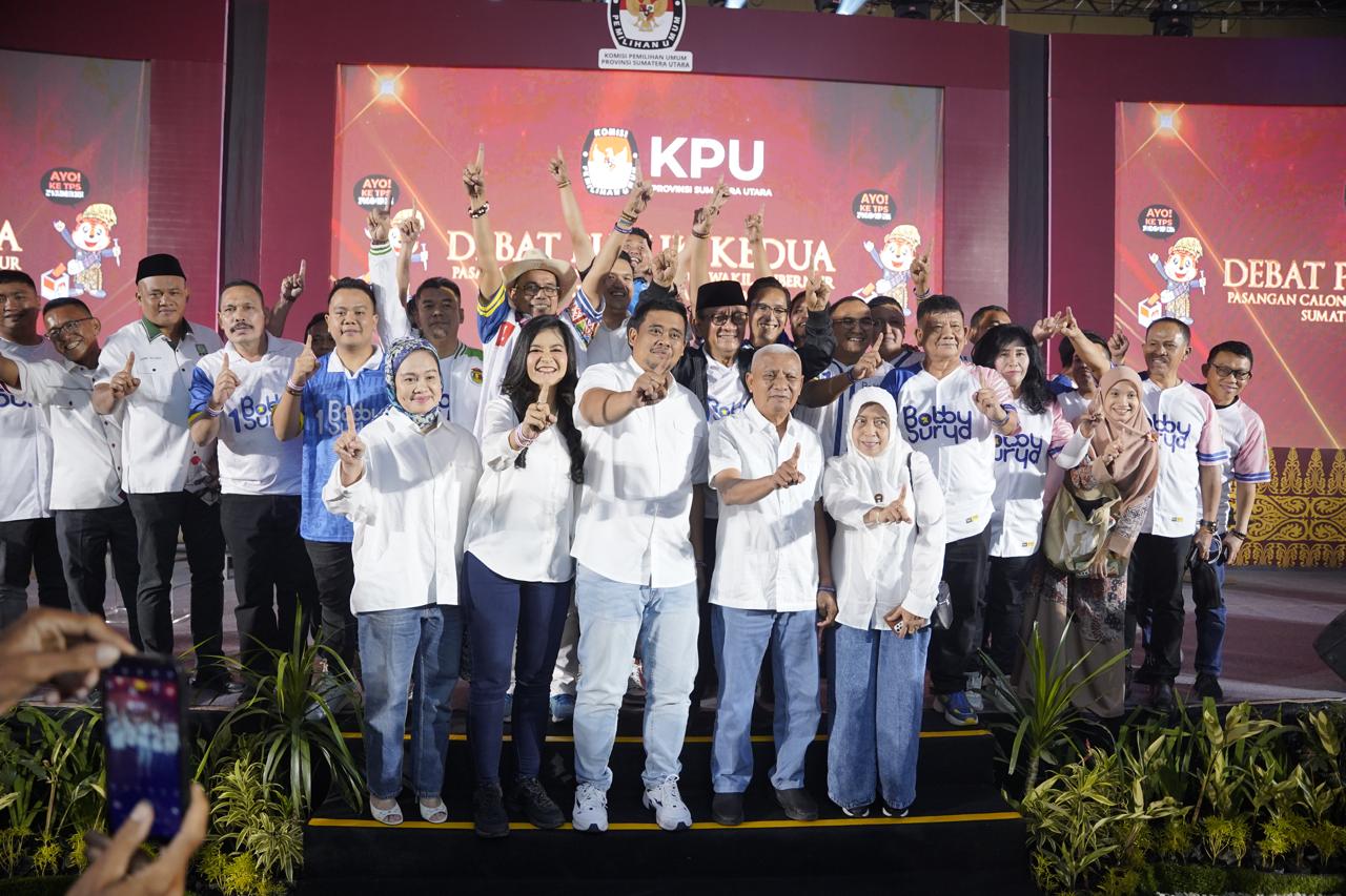 MEDAN – Pasangan Calon Gubernur – Wakil Gubernur Sumatera Utara nomor urut 1 Bobby Nasution – Surya kembali unggul dalam debat publik kedua Pasangan Calon Gubernur – Wakil Gubernur Sumatera Utara yang diselenggarakan KPU Sumut di Hotel Santika Dyandra , Medan, Rabu (6/11/2024) malam.