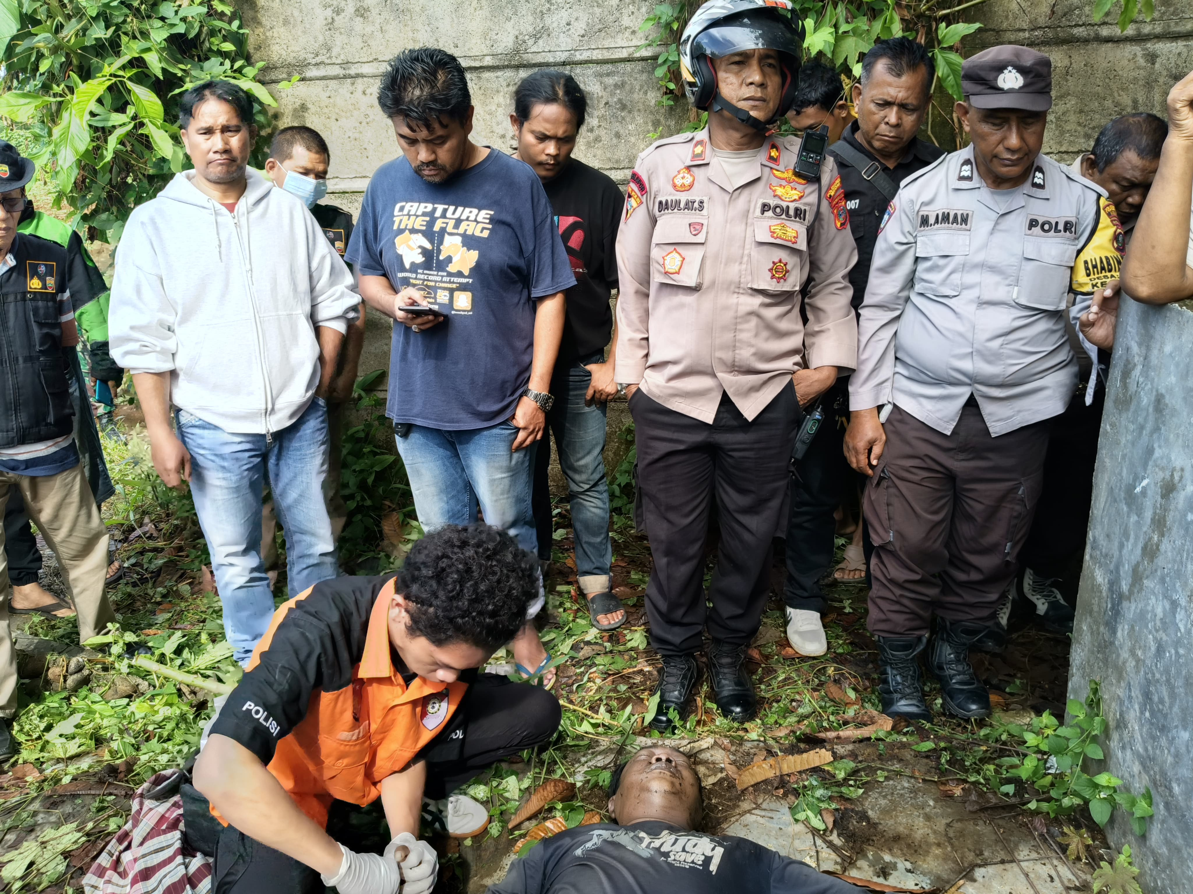 Mayat tersebut di ketahui bernama Suhendro (44) Ojek Pangkalan, jalan Sedap Malam Gg. Coklat, Desa Patumbak II, Kec. Patumbak.