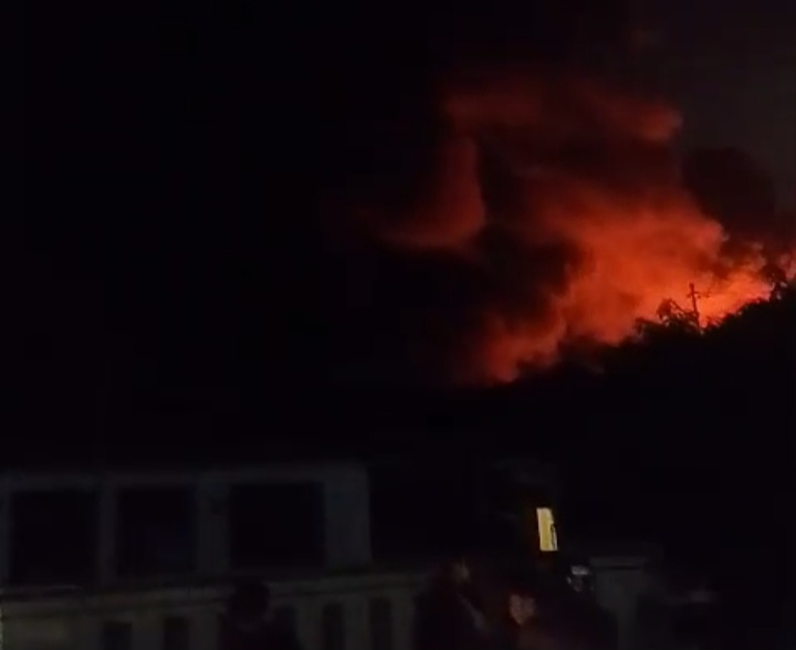 Api dengan cepat membesar dan melalap sebagian besar bangunan pabrik hingga menimbulkan kepulan asap tebal yang terlihat dari kejauhan.