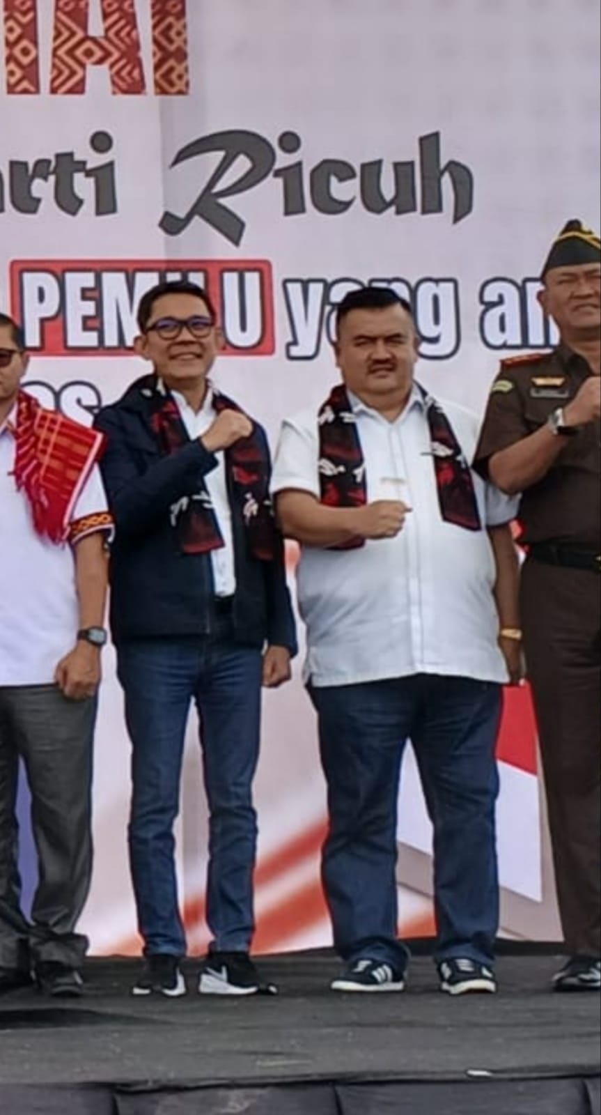 Pasang Cabub Tanah Karo Abetnego dan Edy Hadiri Deklarasi Pemilu Damai “Beda Pilihan Bukan Berarti Ricuh”
