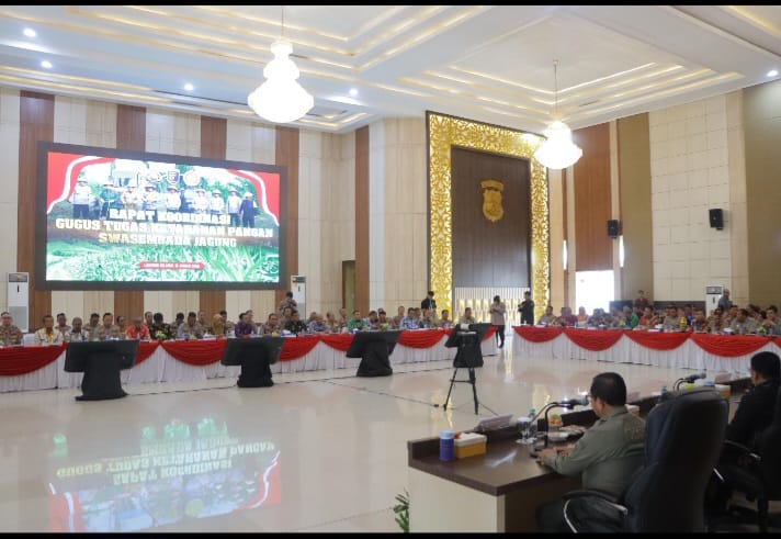 Dalam sambutannya, Kapolda Lampung Irjen Pol Helmy Santika menyampaikan bahwa rakor ini bertujuan untuk mendukung program nasional penanaman jagung seluas 1 juta hektar di Provinsi Lampung sebagai bagian dari upaya mewujudkan swasembada pangan.