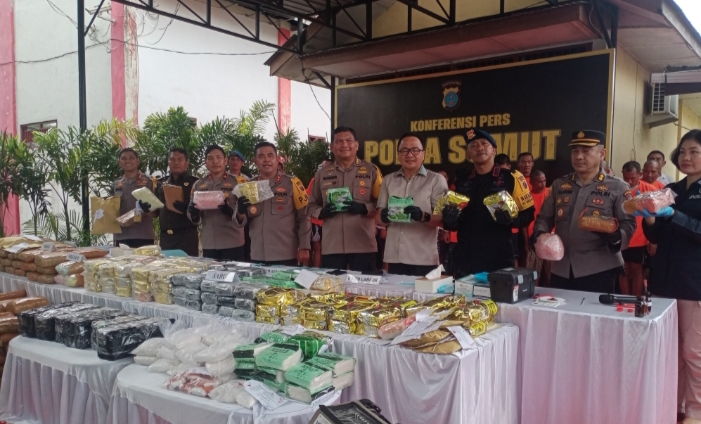Dirnarkoba Poldasu Kombes Yemi Mandagi menambahkan, pengungkapan narkoba ini melibatkan jaringan internasional Malaysia-Bagan Asahan dan jaringan nasional.