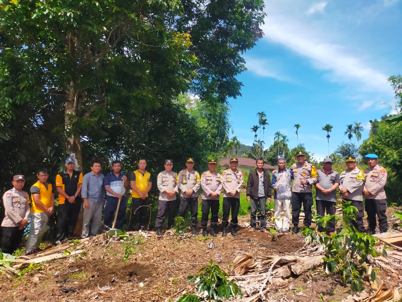 Setibanya di lokasi tanah hibah yang berada di Dusun 1 Desa Ulu Merah Kecamatan Sitellu Tali Urang Julu Kabupaten Pakpak Bharat Provinsi Sumatra Utara Kapolres beserta rombongan di sambut Kepada Desa Ulu Merah Bapak Marudut Berutu, Kasi Kesra Rinto Tumangger, Bhabinkamtibmas Polsek Salak dan yang memberikan Tanah Hibah.