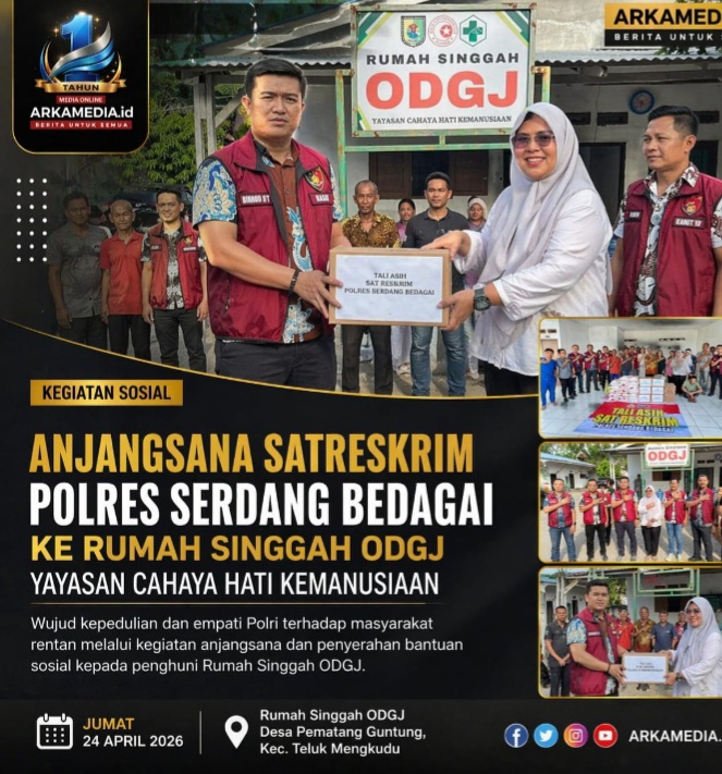 Kasat Reserse Kriminal (Satreskrim) Polres Serdang Bedagai AKP Binrod Situngkir SH MH beserta Kanit Reskrim dan Personel Satreskrim Polres Serdang Bedagai melaksanakan kegiatan anjangsana ke Rumah Singgah Orang Dengan Gangguan Jiwa (ODGJ) Yayasan Cahaya Hati Kemanusiaan di Desa Pematang Guntung, kecamatan Teluk mengkudu, Jum’at (24/4/2026) sekira pukul 14.30 wib.