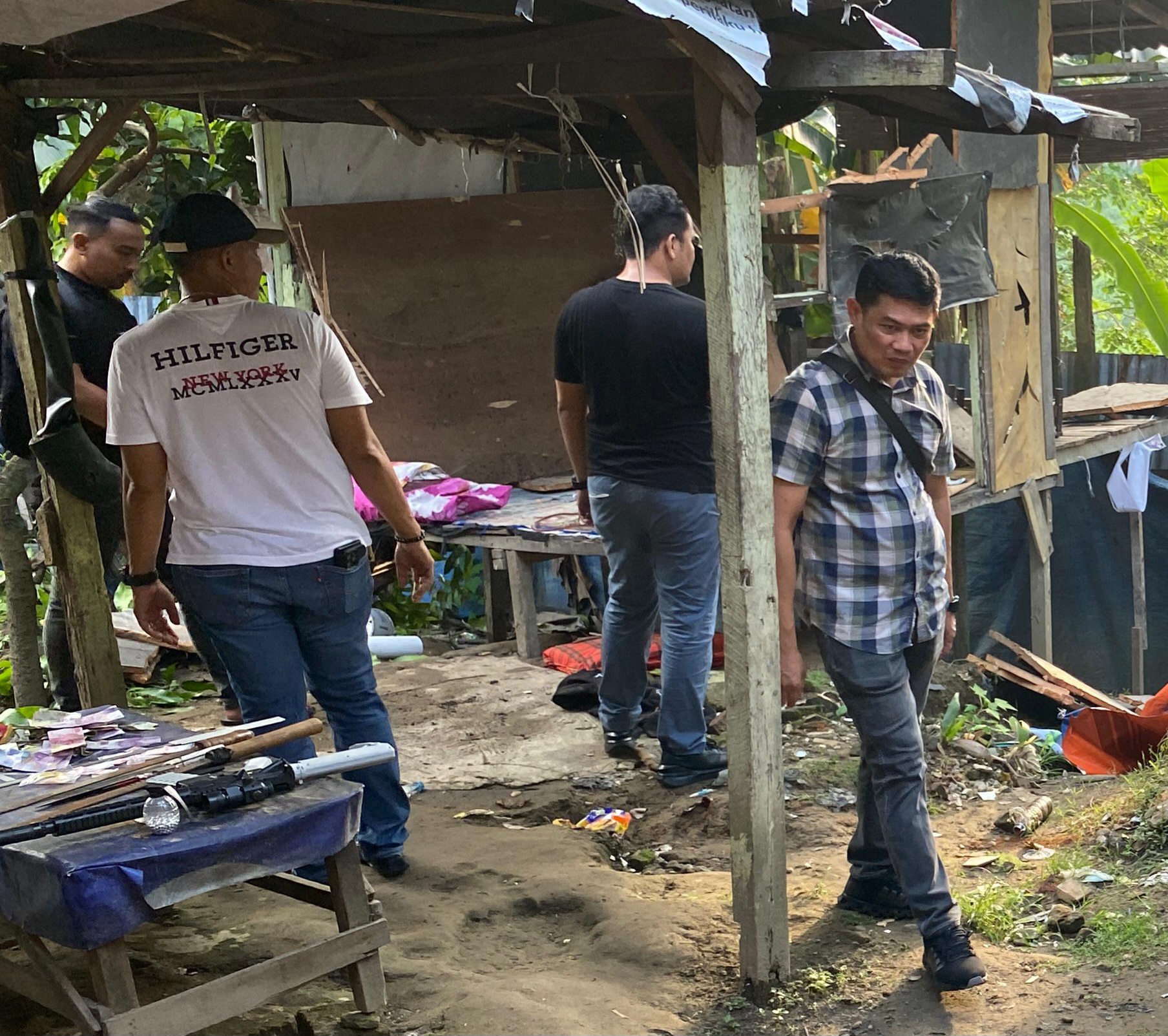 SUNGGAL – Tim Gabungan Polrestabes Medan, Kamis (21/11) sore menggerebek Gang Pantai, Medan Sunggal dan Gang Warisan 2, Medan Helvetia. Dalam penggerebekan ini, tim gabungan meringkus 2 pelaku dan menyita sejumlah senjata tajam, termasuk sepucuk senjata beramunisikan gotri.
