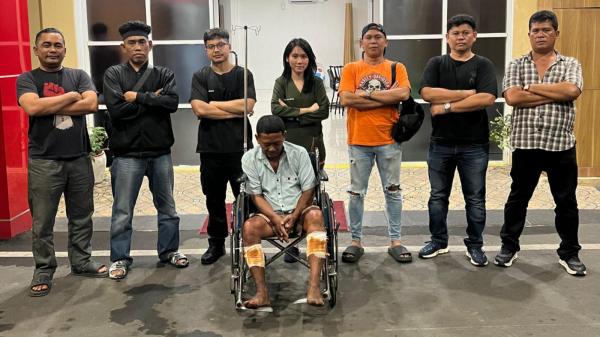 “Karena tindakan pelaku membahayakan dan tidak mengindahkan peringatan, petugas terpaksa melumpuhkannya dengan menembak kedua kaki pelaku hingga roboh ke tanah,” tegas Kapolsek.