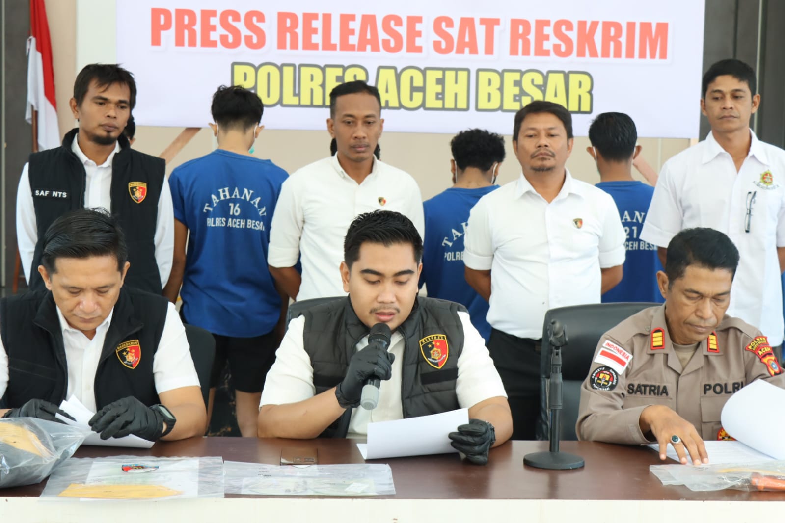Kegiatan Press Release tersebut dipimpin oleh Kasat Reskrim Polres Aceh Besar AKP Teguh Prasetyo S.Tr.K SIK didampingi oleh Kasi Humas AKP Satria Pribadi S.Sos., KBO Sat Reskrim Ipda M.Hafiq SH dan Ps. Kanit Idik 1 Aipda M.Rizal Satria S.Sos M.Si.