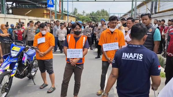 Prarekonstruksi kasus dugaan penganiayaan ini dilakukan di beberapa lokasi berbeda dengan menghadirkan tiga tersangka, yakni dua warga sipil, Dimas Adrianto dan Yudi Siswoyo, serta oknum polisi Ahmad Efendi yang menjabat sebagai Kanit Reskrim Polsek Simpang Empat.