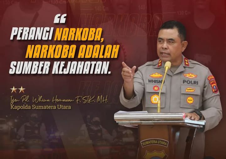 MEDAN – Kapolda Sumut Kapolda Sumut Irjen Pol Whisnu Hermawan menegaskan perlunya tindakan tegas dan tanpa kompromi terhadap para pelaku peredaran narkoba.