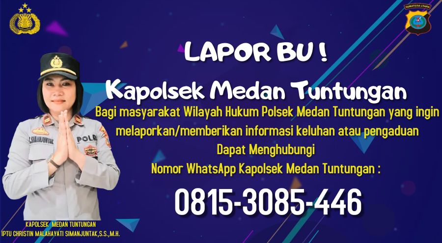 Kepada masyarakat di wilayah hukum Polsek Medan Tuntungan, kita dari Polsek Medan Tuntungan siap melayani masyarakat di Nomor telpon : 0815 3085 446. Mari sama – sama kita jaga situasi keamanan dan ketertiban di wilayah kita ini guna menyongsong Pemilu Tahun 2024 yang aman dan Damai, pungkas Christin.(asen)