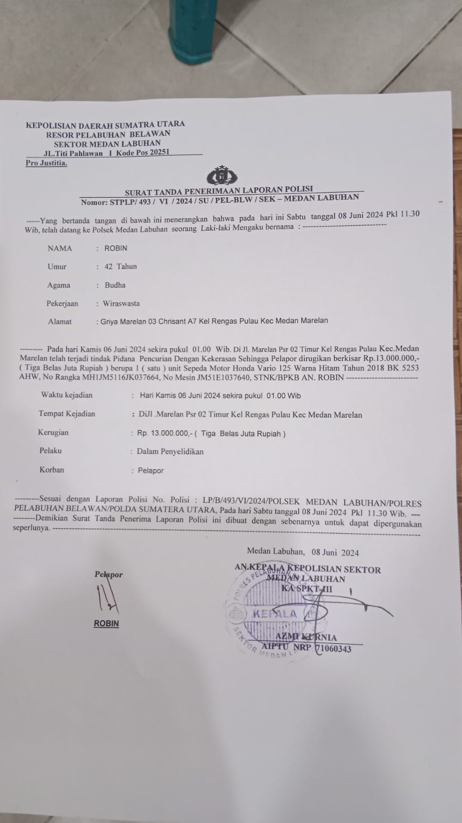 “Saya berharap polisi segera ungkap kasus saya dan menangkap para pelaku. Saya sampe pinjam uang sama kawan untuk beli kreta,” harap korban.