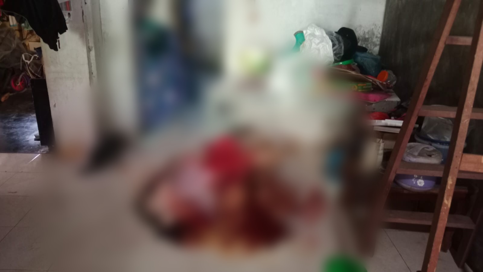 Korban di temukan tewas tergeletak bersimbah darah setelah leher nya diduga terkena senjata tajam milik pelaku yang kabur, lantaran diduga ketahuan oleh korban ketika akan mencuri di rumah korban.