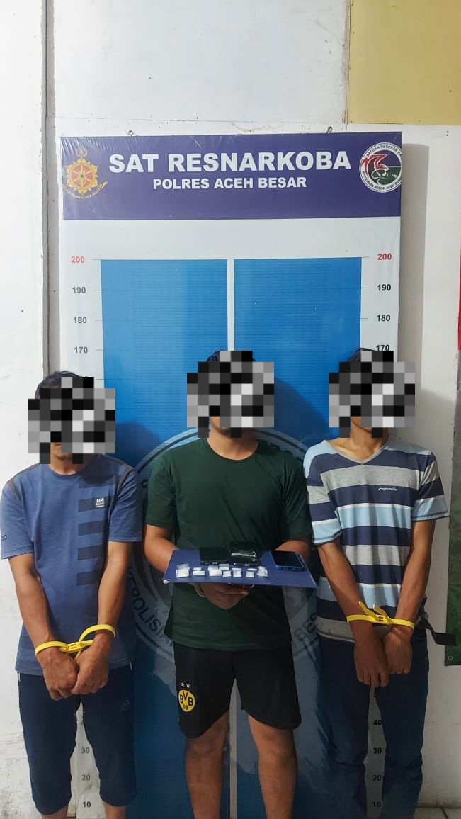 Tersangka MP (26) dan AR (29) adalah warga Desa Gampong Garut Kecamatan Darul Imarah Kabupaten Aceh Besar, sementara tersangka TM (42) berasal dari Desa Lam Awe Kecamatan Peukan Bada Kabupaten Aceh Besar. ZH (25) dan RZ (21) menjadi saksi dalam penangkapan tersebut. Selasa (24/10/23).