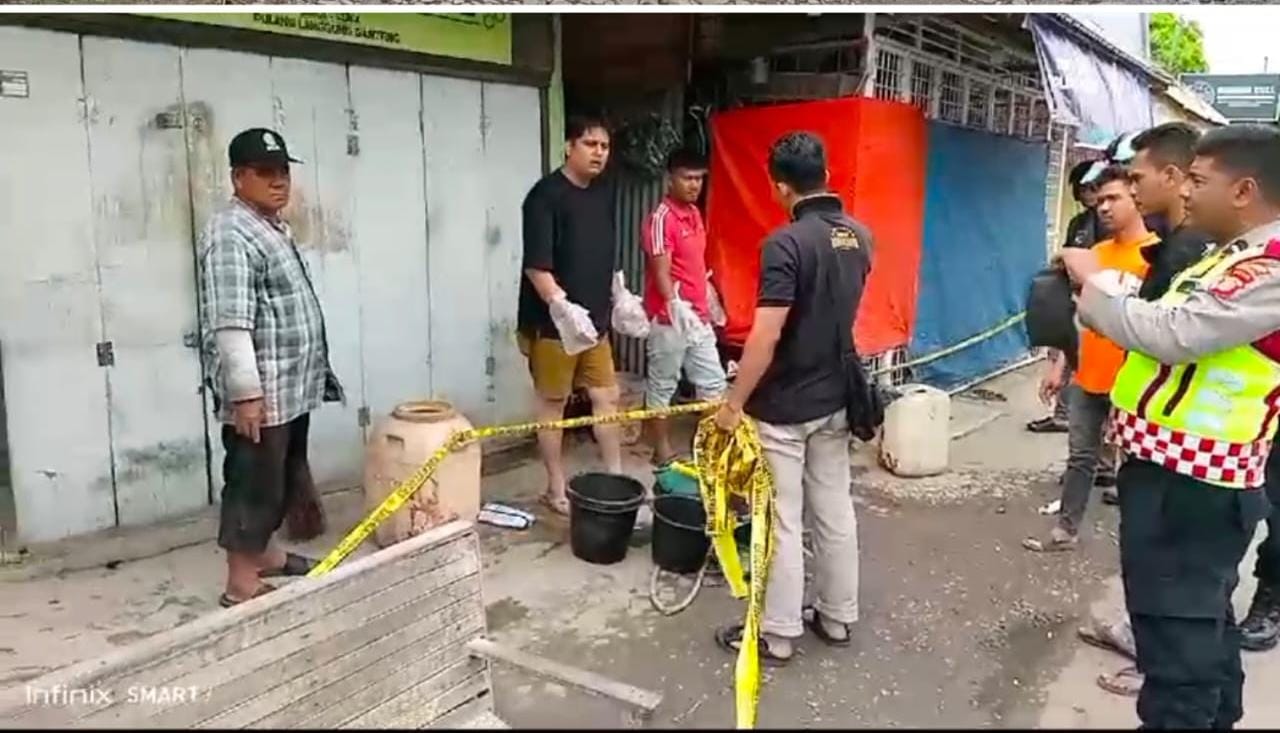 PIDIE – Paska terbunuhnya Pekerja ponsel Fajarullah (25) didepan tempat kerjanya yang beralamat di Jl T Iskandar Cot Irie, Gampong Gla Meunasah Baro, Krueng Barona Jaya, Aceh Besar dini hari. Warga setempat bersama pihak kepolisian bergotong royong membersihkan Tempat Kejadian Perkara (TKP) Senin (29/1/2024).