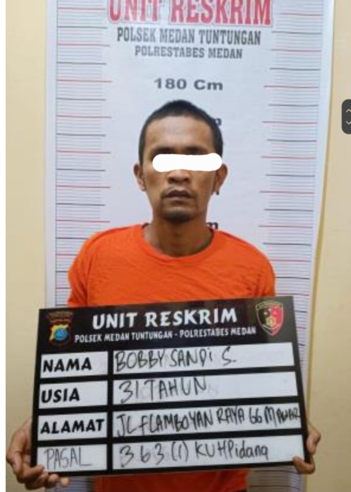 “Di ruang sel tahanan Polsek Medan Tuntungan ada penghuninya, diantaranya, pelaku Curanmor inisial IH alias I, LP/536/XI/2023, kejadian pada tgl 18 November 2023 TKP di parkiran toko Indomaret Fred jalan Flamboyan Raya, lalu ada GM, Pr, LP/B/448/IX/2023 melakukan tindak pidana pencurian yang di teruskan pada tgl 10 Agustus 2023 TKP di jalan lizardi Putra Perum Setia Budi Vista dengan barang bukti hasil pencurian berupa 1 ikat cincin emas, 1 unit Laptop, 1 unit hp merk Oppo, 1 unit hp merk Samsung dan sehelai baju serta memory.