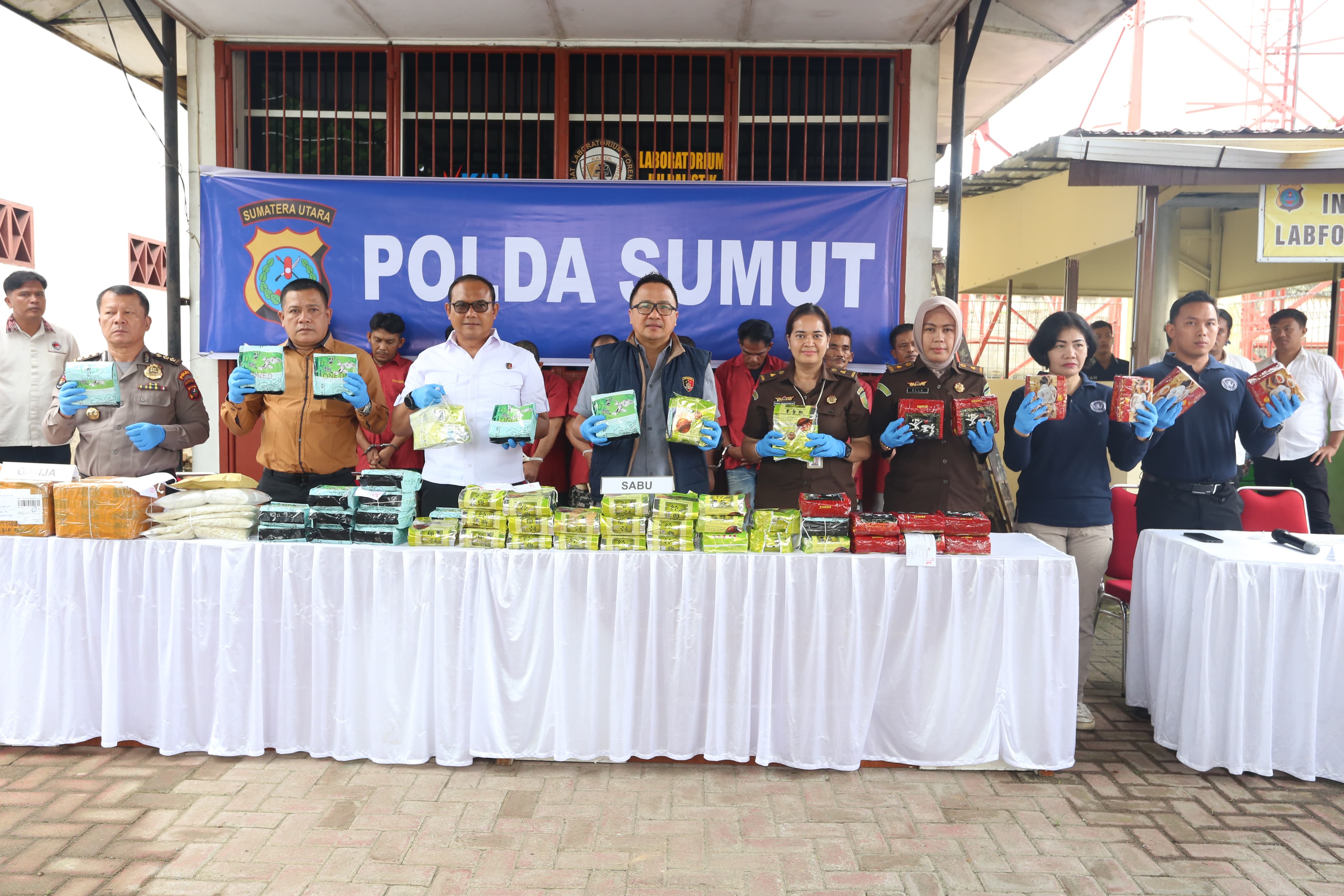 “Pemusnahan barang bukti narkoba yang dilakukan sebagai bentuk komitmen Polda Sumut dalam memberantas peredaran narkotika di Provinsi Sumatera Utara,” katanya.
