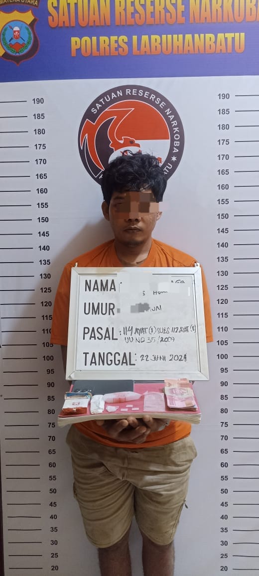 Sabtu tanggal 22 Juni 2024, Tim Opsnal Satresnarkoba melakukan penggerebekan di lokasi tersebut. Pelaku yang berhasil diamankan adalah HS alias Hendra, laki-laki berusia 29 tahun, berdomisili di Desa Meranti, Kecamatan Na IX-X, Kabupaten Labuhanbatu Utara.