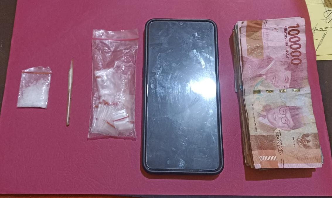 Atas informasi dari masyarakat telah berhasil menangkap pelaku seorang perempuan berinisial MW Als Titin Als Genong dari hasil penggeledahan didapat dari pelaku 1 bungkus plastik klip trasparan diduga berisikan narkotika jenis sabu-sabu dengan berat 1,40 gram bruto, 1 bungkus plastik klip berisikan plastik klip kosong, 1 buah scop terbuat dari pipet, 1 Unit handphone merek Oppo warna hitam uang tunai sebesar Rp. 600.000,-(enam ratus ribu rupiah).