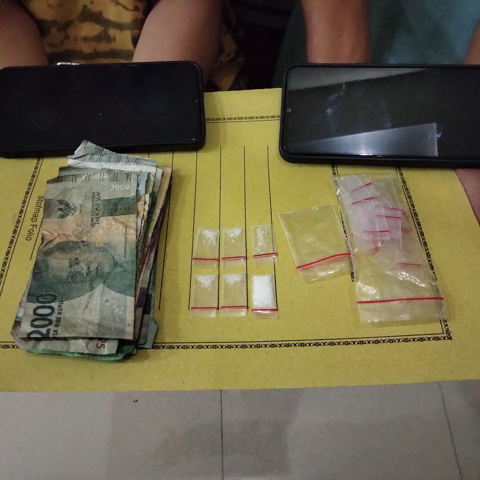 Pada saat pelaku diamankan berhasil mengamankan, 6 buah paket kecil diduga narkotika jenis sabu dengan berat 0,94 gram, 2 unit Handphone merk Vivo hitam dan Oppo warna ungu, 1 bungkus plastik klip berisikan plastik klip kosong, uang tunai Rp 307.000.