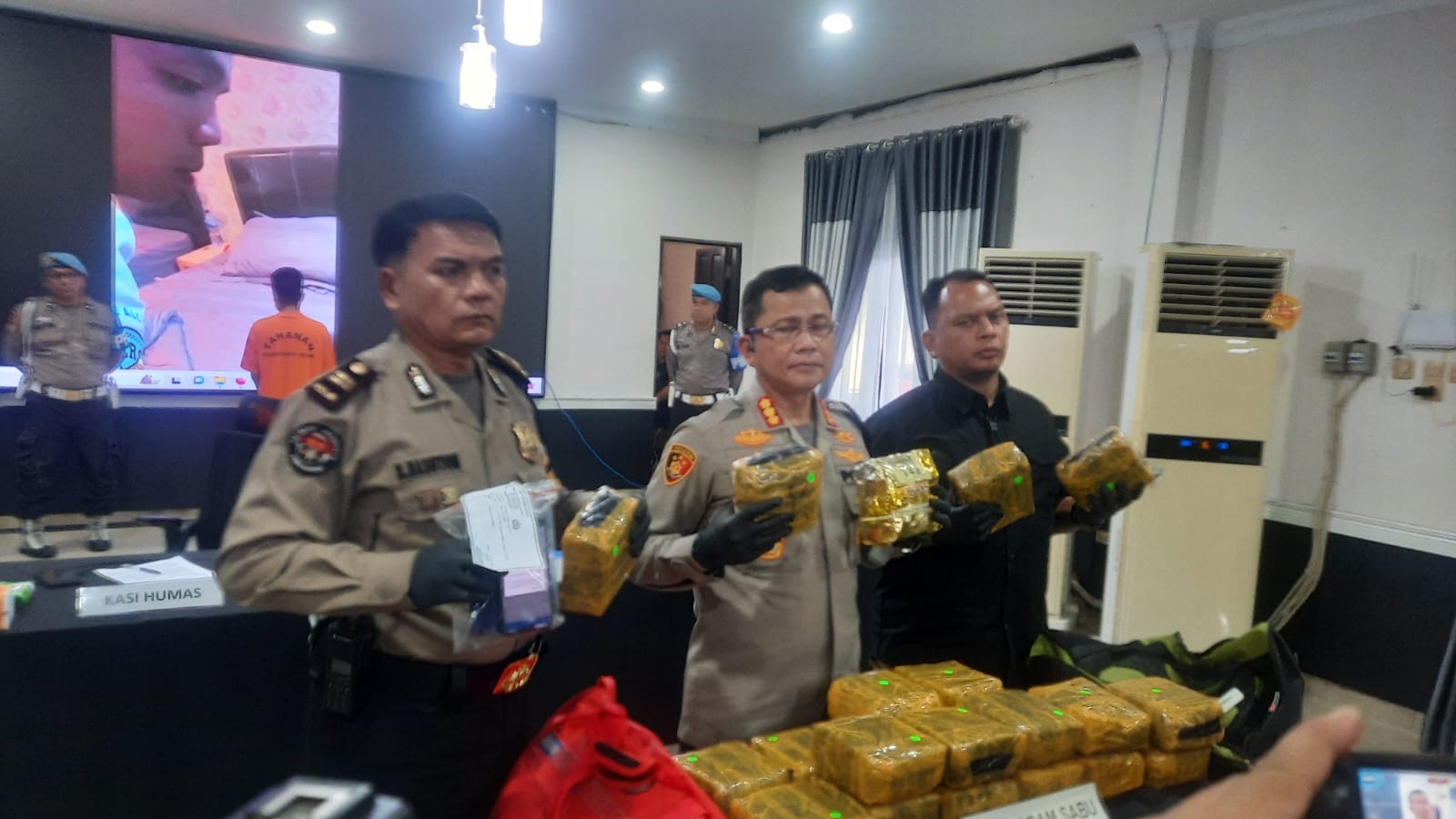 Selain tersangka AFS yang merupakan warga Dusun IV Pasar VII, Desa Marindal I, Kecamatan Patumbak, Kabupaten Deli Serdang itu, polisi menyita narkotika jenis sabu sebanyak 24 bungkus plastik teh cina dengan berat 23,8 kg.