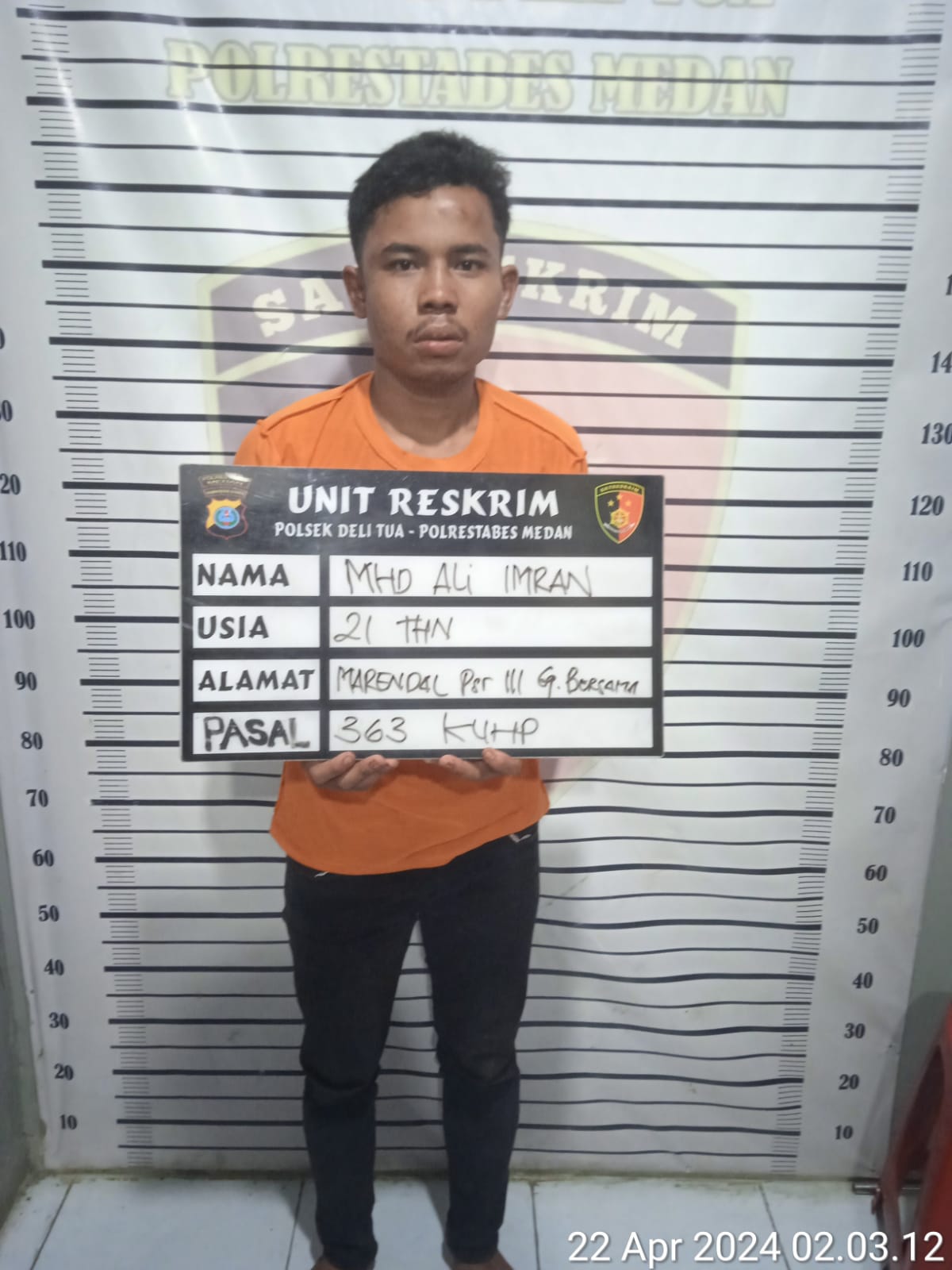DELITUA – Seorang pelaku curanmor, RAK (30) warga Jalan Besar Delitua, diciduk Polsek Delitua. Tersangka mencuri di kawasan jalan besar Delitua, Gang Dahlia, Kelurahan Suka Makmur, Kecamatan Delitua, Senin (22/4) dini hari, sekira pukul 02.00 WIB.