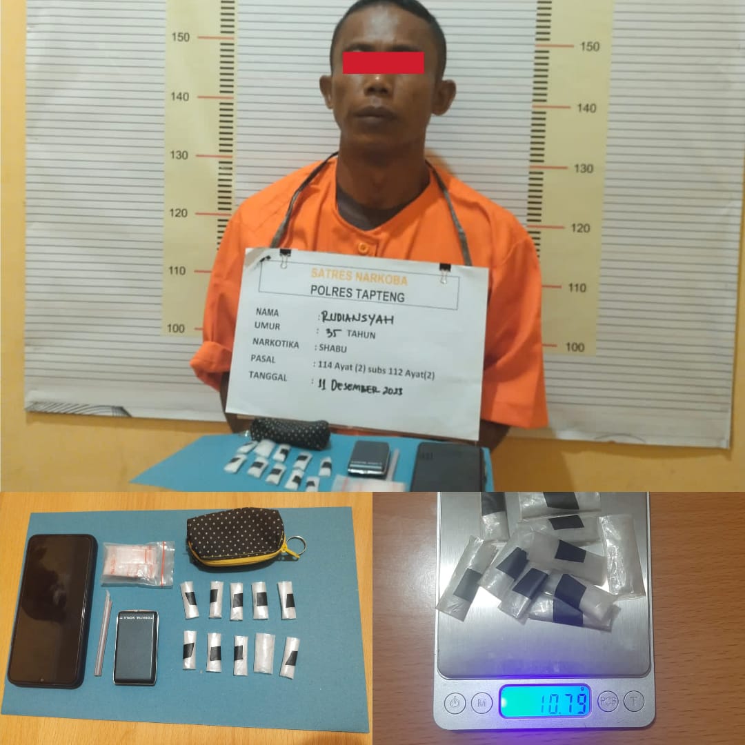 Kapolres Tapanuli Tengah AKBP Basa Emden Banjarnahor SIK MH melalui Kasat Narkoba Polres Tapteng AKP Juli Purwono SH MH menjelaskan bahwa dari tersangka diamankan Barang Bukti sebanyak 10 paket narkotika jenis sabu, 1 unit timbangan digital, 1 Handphone merk Vivo dan 1 dompet hitam. Untuk berat bruto BB narkotika jenis sabu 10,79 (sepuluh koma tujuh puluh sembilan) gram.