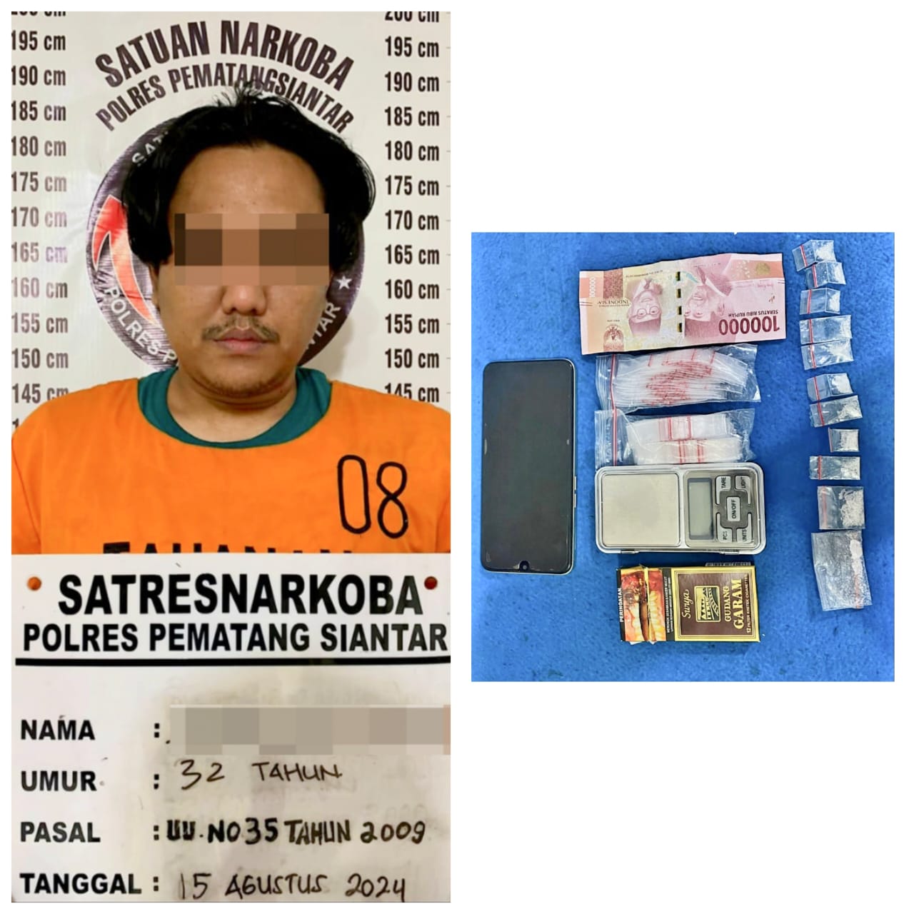 Kapolres Siantar AKBP Yogen Heroes Baruno SH, SIH melalui Kasat Resnarkoba AKP JH. Pasaribu SH, MH pada hari Sabtu (17/8/2024) mengatakan pria diduga pengedar itu berinisial SKS (32) warga Jalan Tanah Jawa Gg. Batu Bara Kelurahan Melayu Kecamatan Siantar utara Kota Siantar.