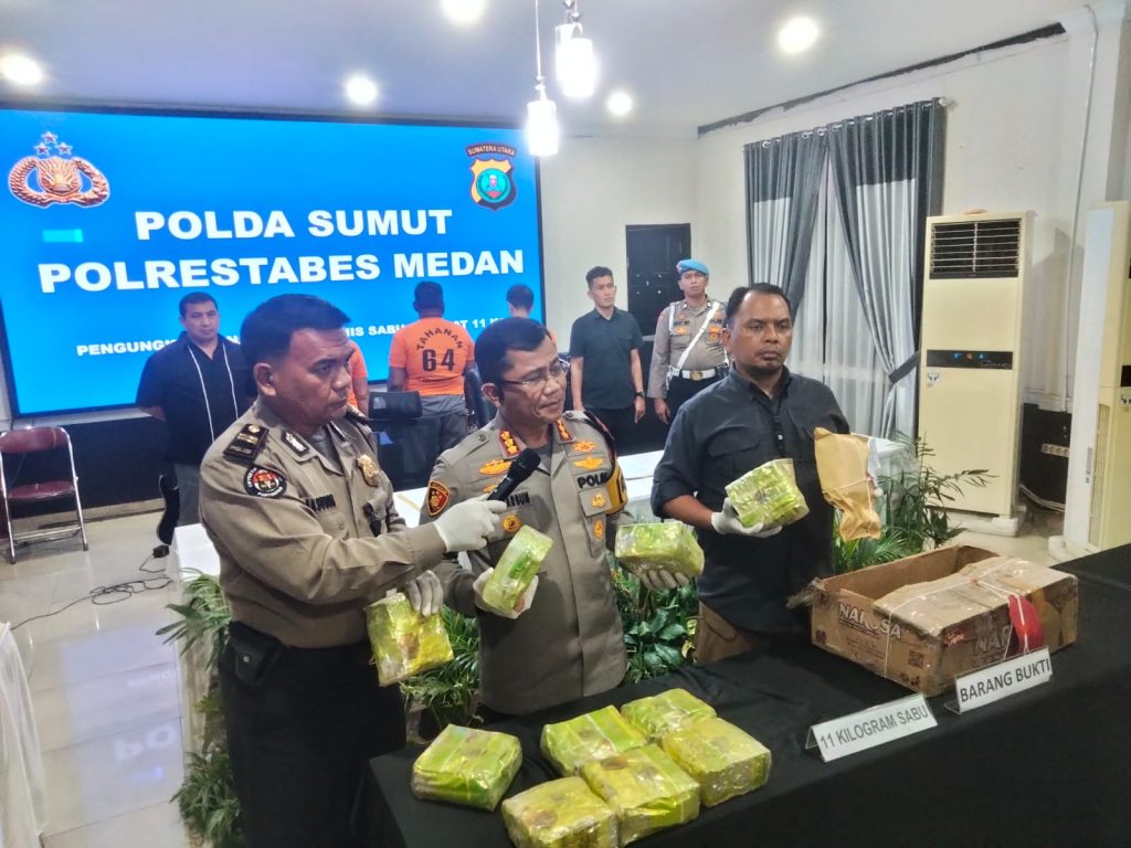 Hal tersebut dibuktikan dengan terus mengungkap 11 kilogram narkotika jenis sabu dan pelaku kurir 3 orang ditangkap berbagai lokasi di Medan.