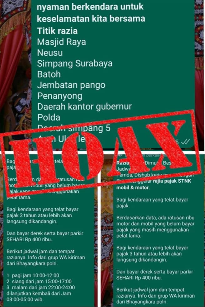 Terkait informasi tersebut, Kabid Humas Polda Aceh Kombes Joko Krisdiyanto memastikan, bila pesan WhatsApp tersebut merupakan disinformasi alias hoaks.