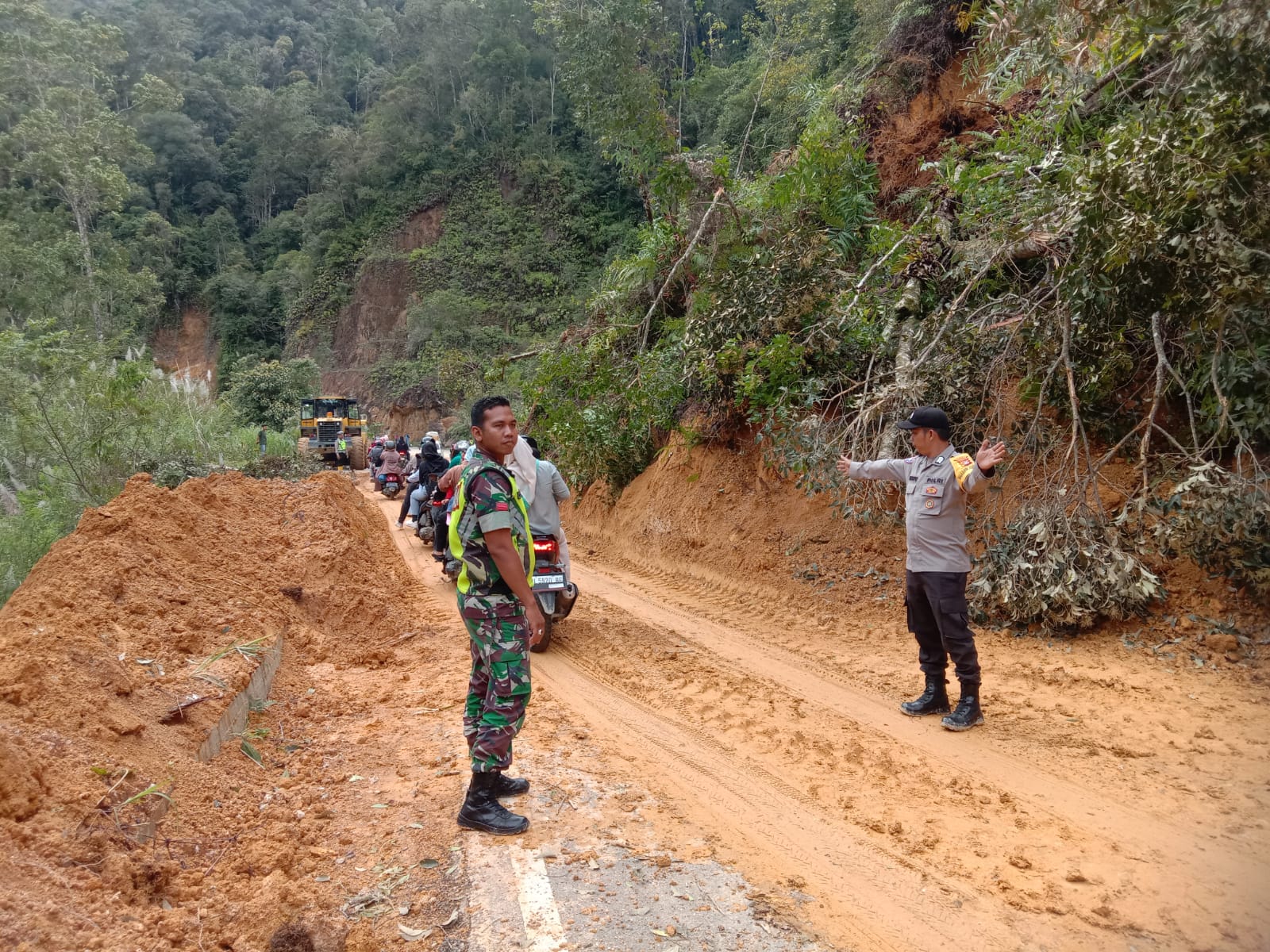 GAYO LUES – Blangkejeren, Bencana alam tanah longsor dan pohon kayu tumbang, telah sempat memutuskan akses jalan sehingga lalulintas jalur Blangkejeren -Takengon lumpuh total, Pembersihan material bencana alam telah berhasil dilaksanakan oleh jajaran kepolisian Polres Gayo Lues dan Koramil serta Dinas PU, PT. Lembah Alas, Upaya membuka kembali akses jalan lintas Blangkejeren-Takengon ini Sebagai tindak lanjut dari tanah longsor yang terjadi di KM 406 Dusun Godang Desa Kenyaran Kecamatan Pantan Cuaca Kabupaten Gayo Lues. Rabu (15/11/2023) pukul 11.25 WIB.