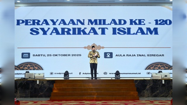 Bobby Nasution beri hadiah istimewa keluarga Syarikat Islam itu pada peringatan Milad ke 120 Syarikat Islam di Aula Raja Inal Siregar, Kantor Gubernur Sumut, Jalan Diponegoro Nomor 30 Medan, Sabtu (25/10/2025).
