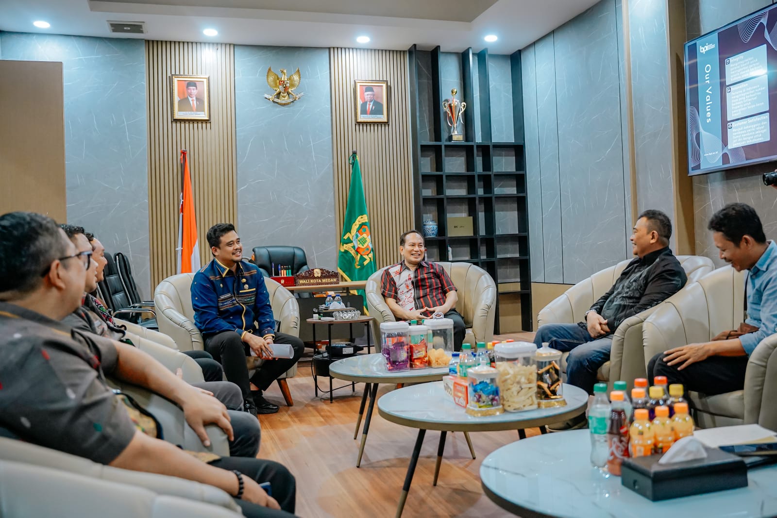 “Kami (Pemko Medan) siap mendukung. Jika memerlukan tempat untuk dijadikan studio, Pemko Medan siap menyediakannya,” kata Bobby Nasution didampingi Kadis Pariwisata Yuda P Setiawan, Kadis Pendidikan dan Kebudayaan Benny Sinomba, Kepala Bappeda Benny Iskandar dan Kadis Perumahan, Kawasan Permukiman, Cipta Karya, dan Tata Ruang Alexander Sinulingga.