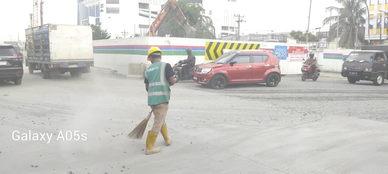 Selain penyiraman jalan, Bambang juga menjelaskan pihaknya setiap hari melakukan pembersihan jalan dari tanah maupun batu-batu.