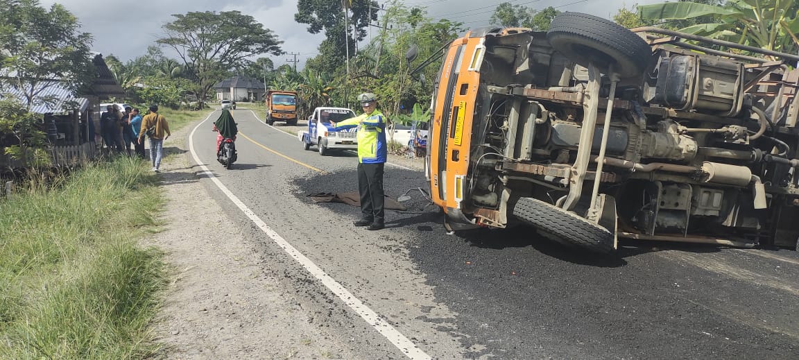 PIDIE – Kecelakan Tunggal Mobil barang Mitsubishi Fuso di Jalan Nasional Meulaboh – Blang Pidie, Kecamatan Darul Makmur, Kabupaten Nagan Raya