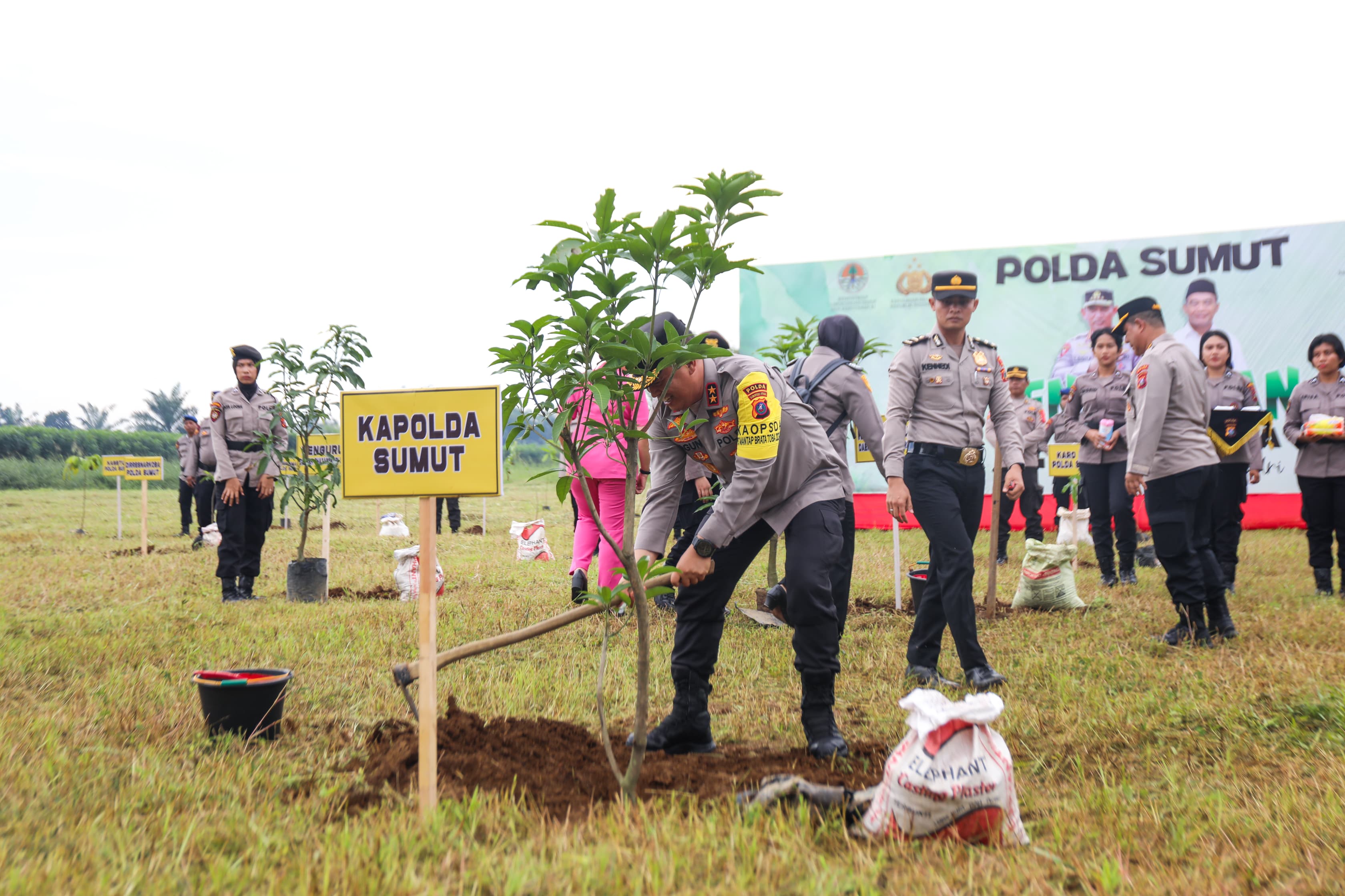 Kapoldasu mengatakan, kegiatan ini dalam rangka penanaman 10 juta pohon antara Polri dan Kemenko PMK secara serentak di Mapolda Sumut.