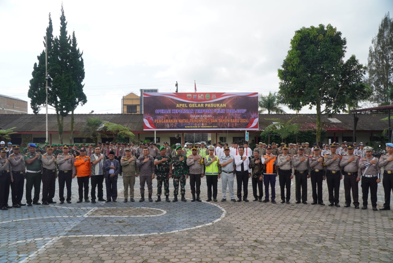 KARO – Dalam rangka Operasi Lilin pengamanan Natal 2023 dan Tahun Baru 2024 wilayah Kabupaten Karo, Polres Tanah Karo Apel Gelar Pasukan di halaman Mapolres Tanah Karo, Kamis (21/12/2023).