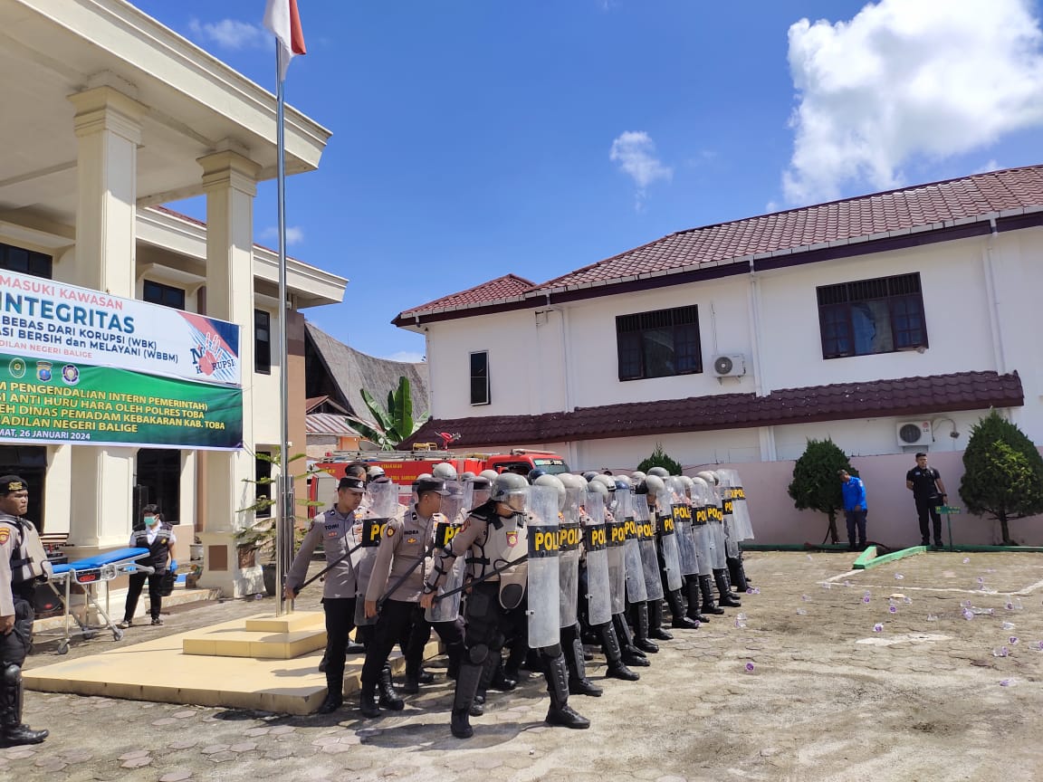 TOBA – Sat Samapta Polres Toba melaksanakan simulasi di Pengadilan Negeri (PN);Balige Kabupaten Toba Provinsi Sumatera Utara, Jumat (26/01/2024) sekira pukul 09.00 Wib Pagi hari.