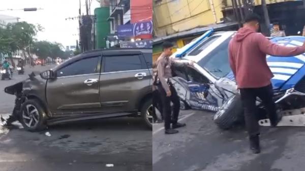 MEDAN – Kecelakaan antara mobil polisi lalu lintas (Polantas) dan mobil jenis SUV mini terjadi di persimpangan Jalan Brigjen Katamso dan Jalan Juanda Medan, Rabu (26/6/2024) sekitar pukul 05.00 WIB. Mobil polisi jenis sedan mengalami kerusakan di bagian body sebelah kanan, sementara mobil Terios rusak berat di bagian depan.