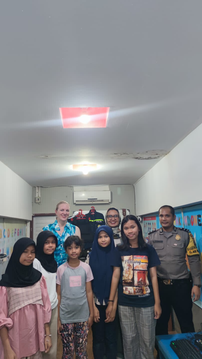 Kristy Mordhorst dan Rachma Jaurinata turut menyaksikan kegiatan belajar anak-anak di rumah belajar tersebut, di mana mereka tengah mengasah keterampilan komputer, termasuk pembelajaran Design 3D dengan Blender, coding menggunakan software unity, dan phyton.