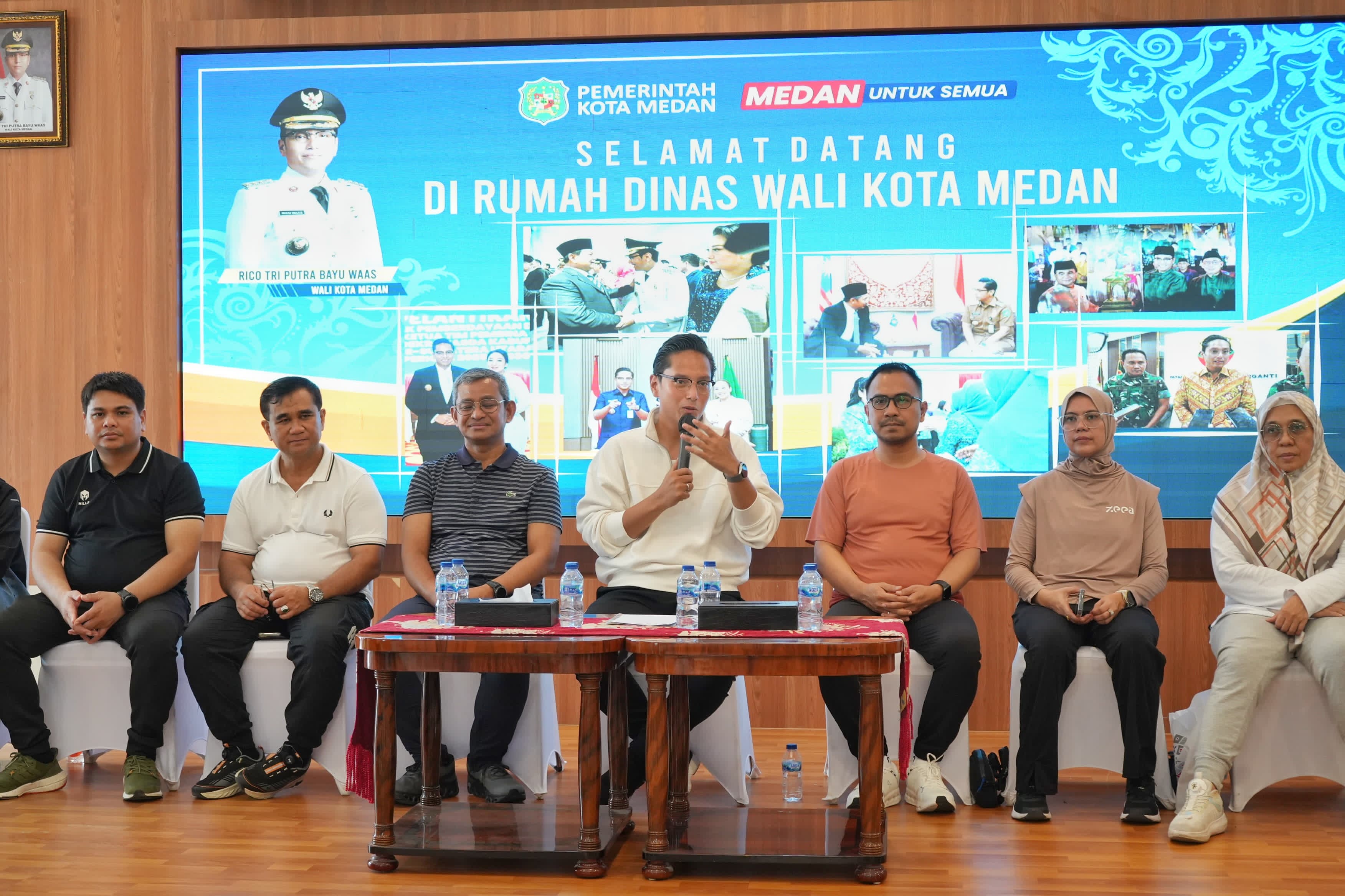 MEDAN – Wali Kota Medan Rico Tri Putra Bayu Waas mengumpulkan seluruh Camat dan Lurah sekota Medan di Pendopo Rumah Dinas Wali Kota Medan, Sabtu (26/4/2025).
